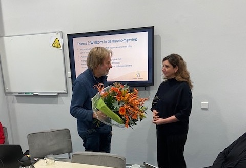 Op het gemeentehuis werd hij hiervoor door wethouder Yasemin Cegerek bedankt met een prachtige bos bloemen. Later werd hij door zijn eigen werkgroep leden nog toegesproken met mooie woorden en anekdotes waaruit duidelijk hun waardering bleek.